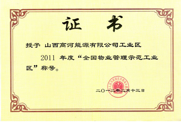 高河煤礦項(xiàng)目獲“全國(guó)物業(yè)管理示范工業(yè)區(qū)”稱號(hào)