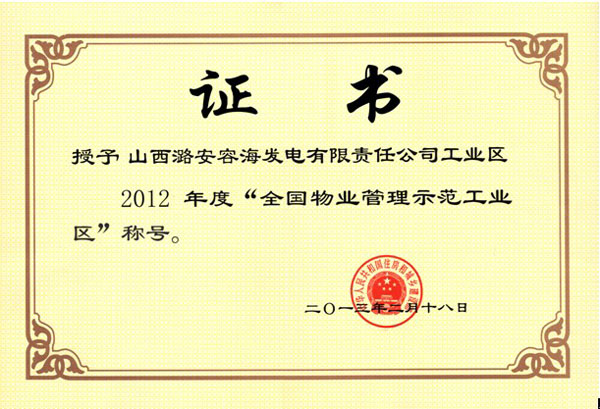 容海發(fā)電項(xiàng)目獲“全國(guó)物業(yè)管理示范工業(yè)區(qū)”稱號(hào)